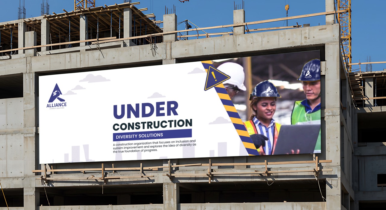 The Alliance: Diversity Solutions logo represents a construction organization that focuses on inclusion and system improvement and explores the idea of diversity as the true foundation of progress. Blue in this design represents trust, stability, and professionalism, while silver conveys modernity and innovation.